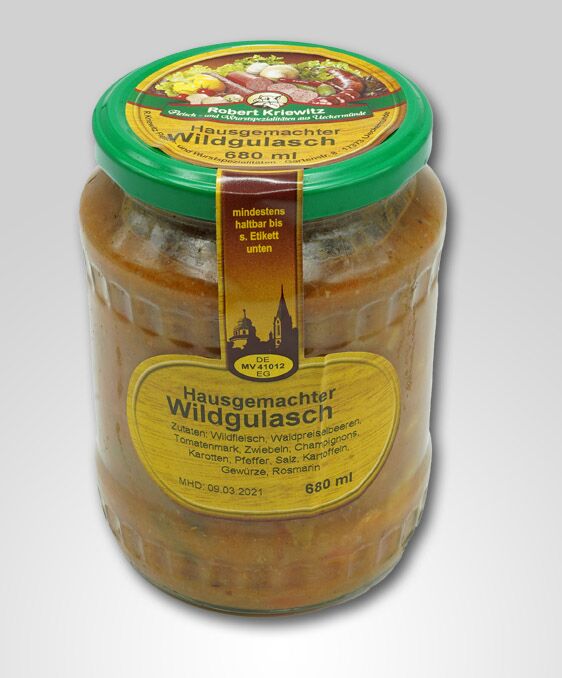 Unser köstliches Wildgulasch mit Wildpreisselbeeren stellt nicht nur an den Feiertagen eine leckere Alternative zum Gänsebraten dar. Das Wildfleisch kommt ausschließlich aus der Uecker-Randow Region und hat keine weiten Transportwege hinter sich, sondern lebte in freier Wildbahn. Ein regionaler Genuß! Ein köstliches Wildgulasch ist was Feines und das nicht nur in der kalten Jahreszeit. Dazu passt ein Glas halbtrockener oder trockener Rotwein ganz hervorragend. Eine passende Beilage sind Knödel, Spätzle oder Nudeln.