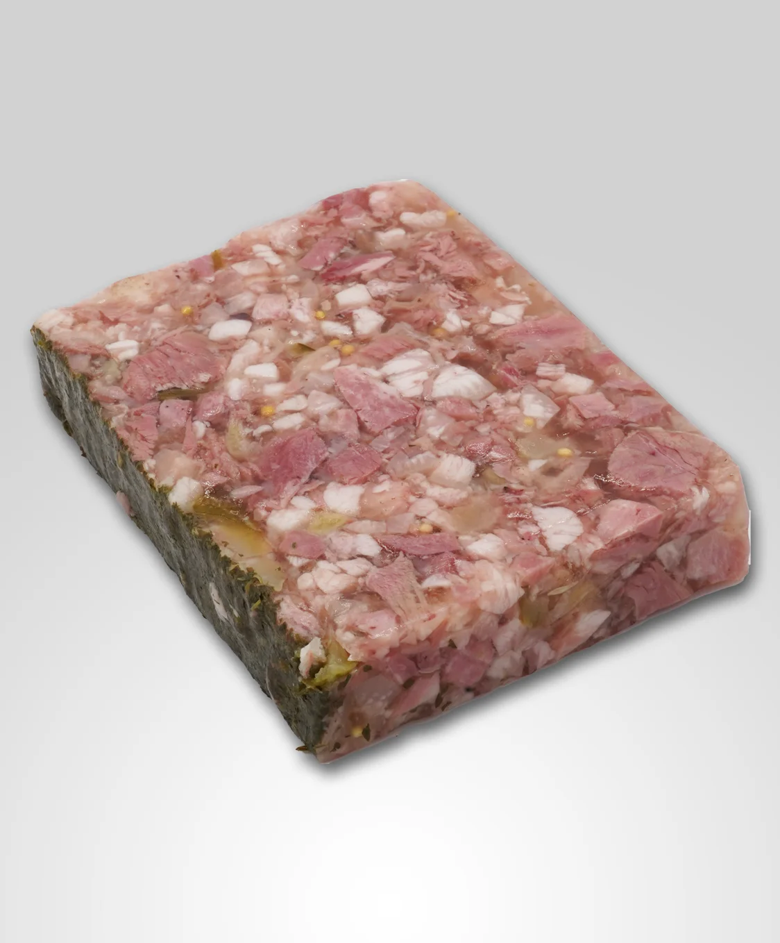 • Zutaten: Schweinefleisch 70 %, Brühe, Gelatine, Gewürze, Bratweinessig, Zucker