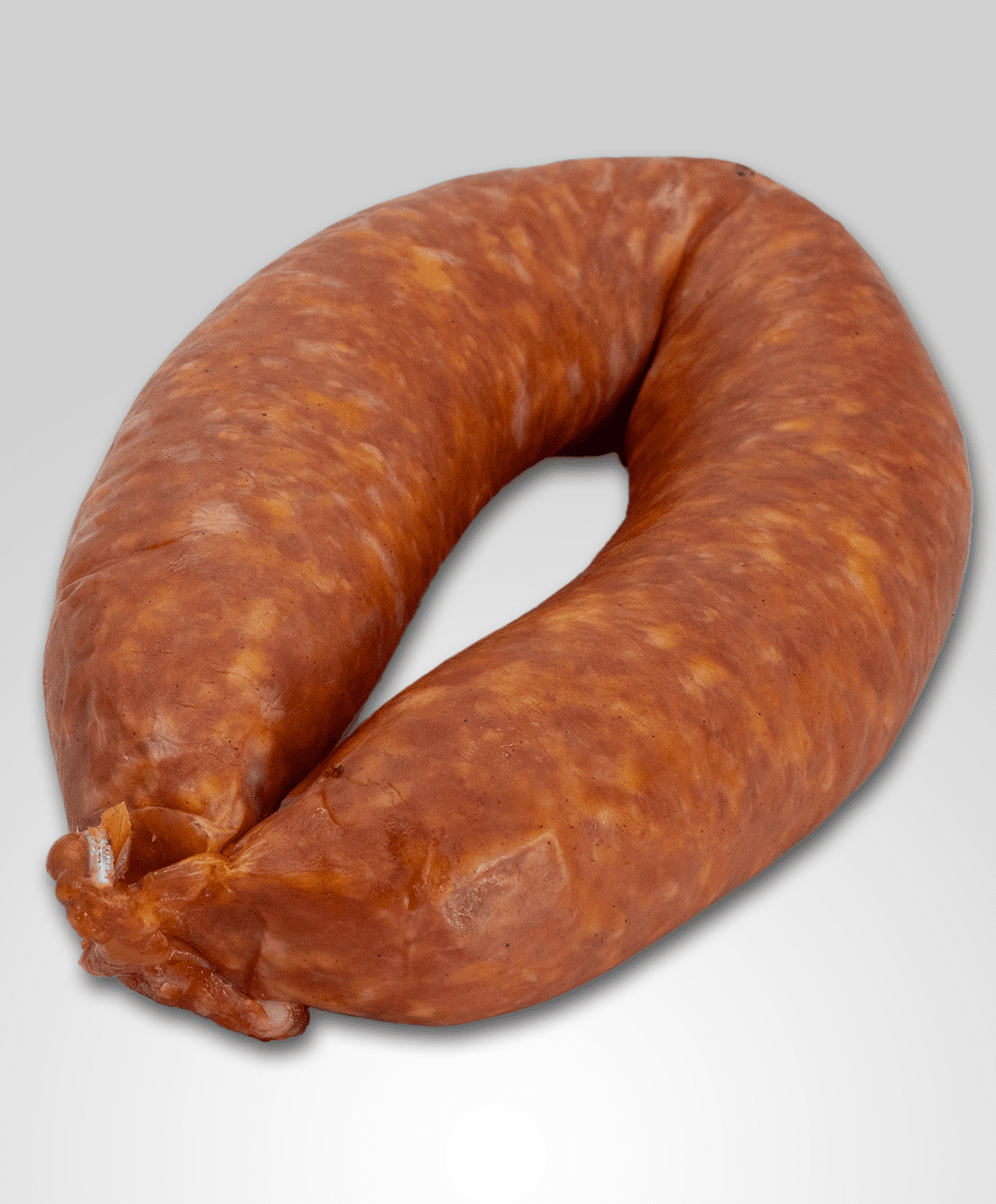 Unsere Ueckermünder Knoblauchwurst ist in unseren Filialen einer der Bestseller. Diese mittelfein gekörnte Rohwurst in Spitzenqualität wird mit viel frischem Knoblauch und angenehmer Gewürznote hergestellt. Das alles nach einem traditionellen Familienrezept. Frisch ist Sie noch zart und streichfähig. Lässt man Sie jedoch reifen, wird Sie zur besten Salami. Der Geschmack entfaltet sich je länger Sie reift. Sie wird praktisch nie alt. Die Wurstmasse wird in einen Rinderkranzdarm gefüllt und kalt nach Kriewitz Tradition geräuchert. Die Knoblauchwurst ist eine Gaumenfreude für Genießer.
