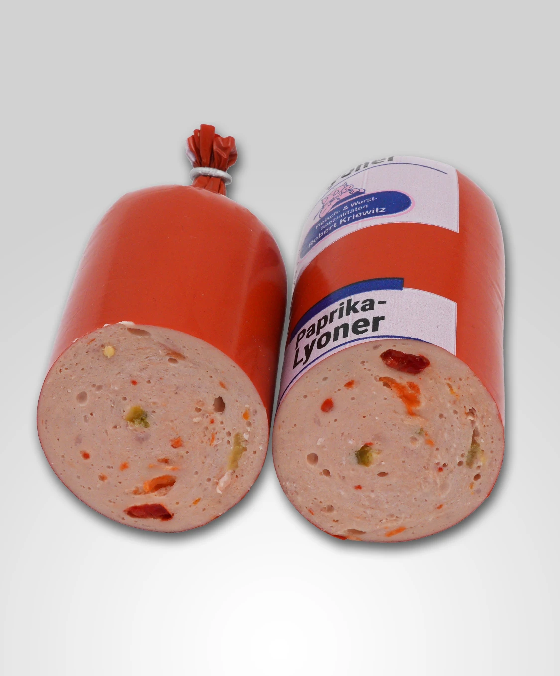 Unsere Paprika Lyoner ist eine fein abgestimmte Brühwurst-Spezialität, die seit 1998 nach hauseigener Rezeptur in Handarbeit gefertigt wird. Sie überzeugt durch ihre zarte Textur, frische Paprikastücke und eine ausgewogene Würzung aus unserer eigenen Gewürzmischung. Von Hand gefüllt und mit viel Sorgfalt verarbeitet, steht sie für ehrliche Qualität und echten Wurstgenuss aus traditioneller Herstellung.