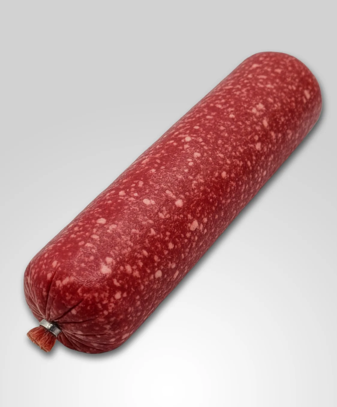 Unsere Rinderzwiebelmettwurst 500 g vereint kräftigen Geschmack mit traditioneller Wursthandwerkskunst – perfekt für alle, die den puren, herzhaften Genuss von Rindfleisch lieben. Hergestellt aus reinem Rindermett, veredelt mit milden Zwiebeln und einer fein abgestimmten Gewürzmischung, bietet sie ein besonders intensives Aroma und eine wunderbar saftige Textur.