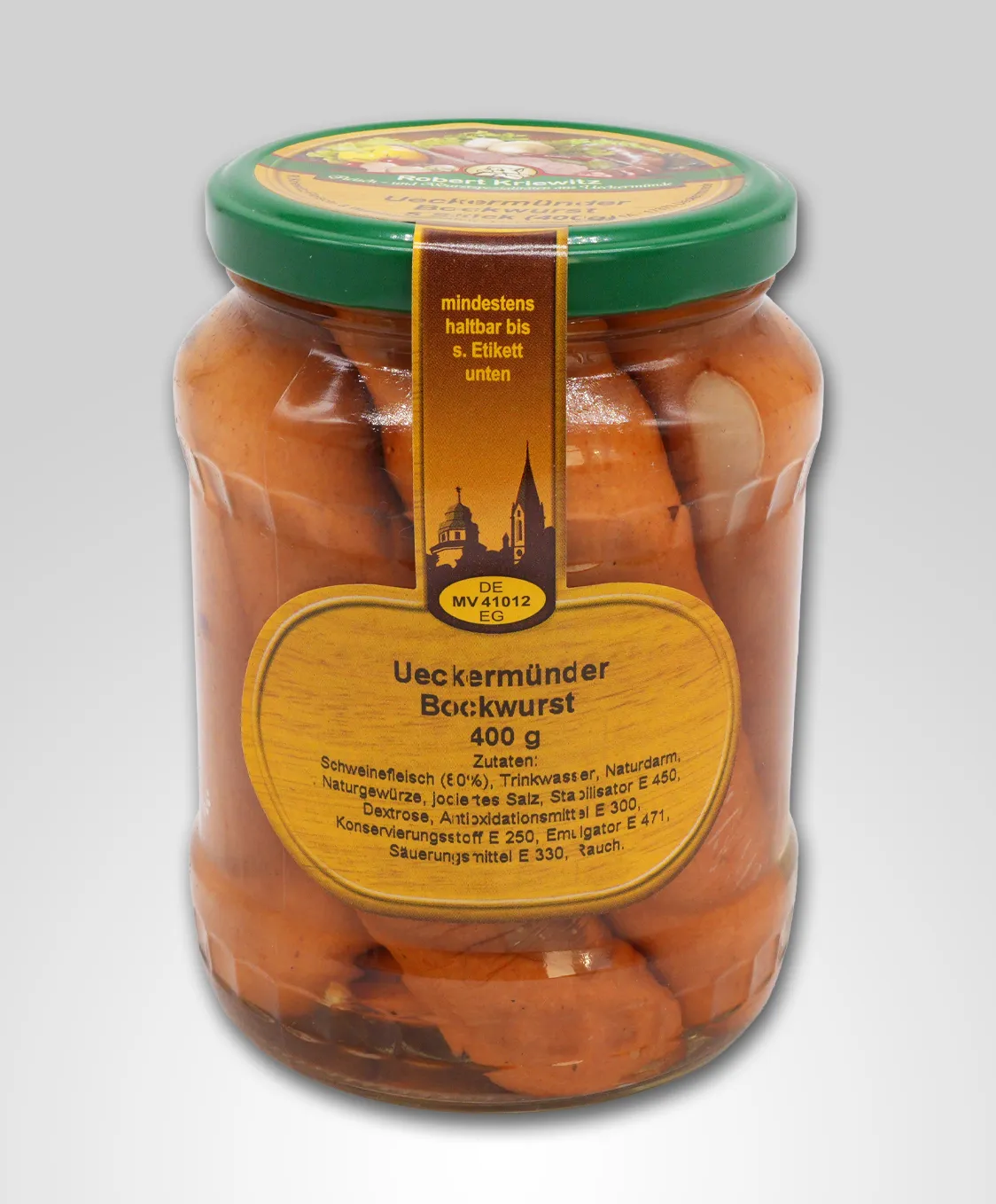 Die Bockwurst ist wirklich der Inbegriff einer deutschen Wurst. Sie wird auch oft Knobländer oder Rote Wurst genannt. Soweit bekannt stammt das Originalrezept aus Berlin. Ihren Namen trägt sie da ursprünglich tatsächlich Bockbier als Getränk zu ihr gereicht wurde. Hergestellt wird unsere knackige Bockwurst nach alter Tradition aus Schweinefleisch. Sie wird nach altem Brauch über Buchenholzspänen geräuchert und bekommt so ein typisches Aroma. Den knackigen Biss gibt es bei unseren Bockwürsten natürlich noch obendrauf. Wir sind seit vielen Jahren auf Messen zu Gast und servieren unseren Gästen dort von Anfang an unsere Bockwurst.