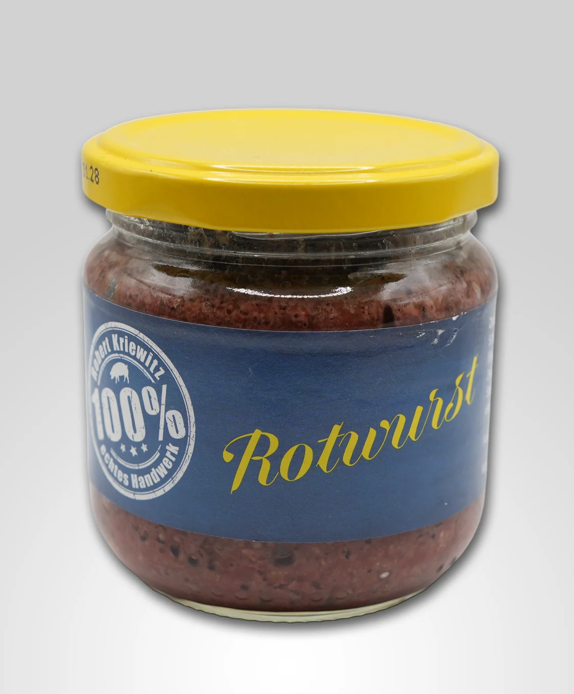 Leckere Ueckermünder Rotwurst im Glas. Natürlich aus eigener Herstellung nach altem Familienrezept.