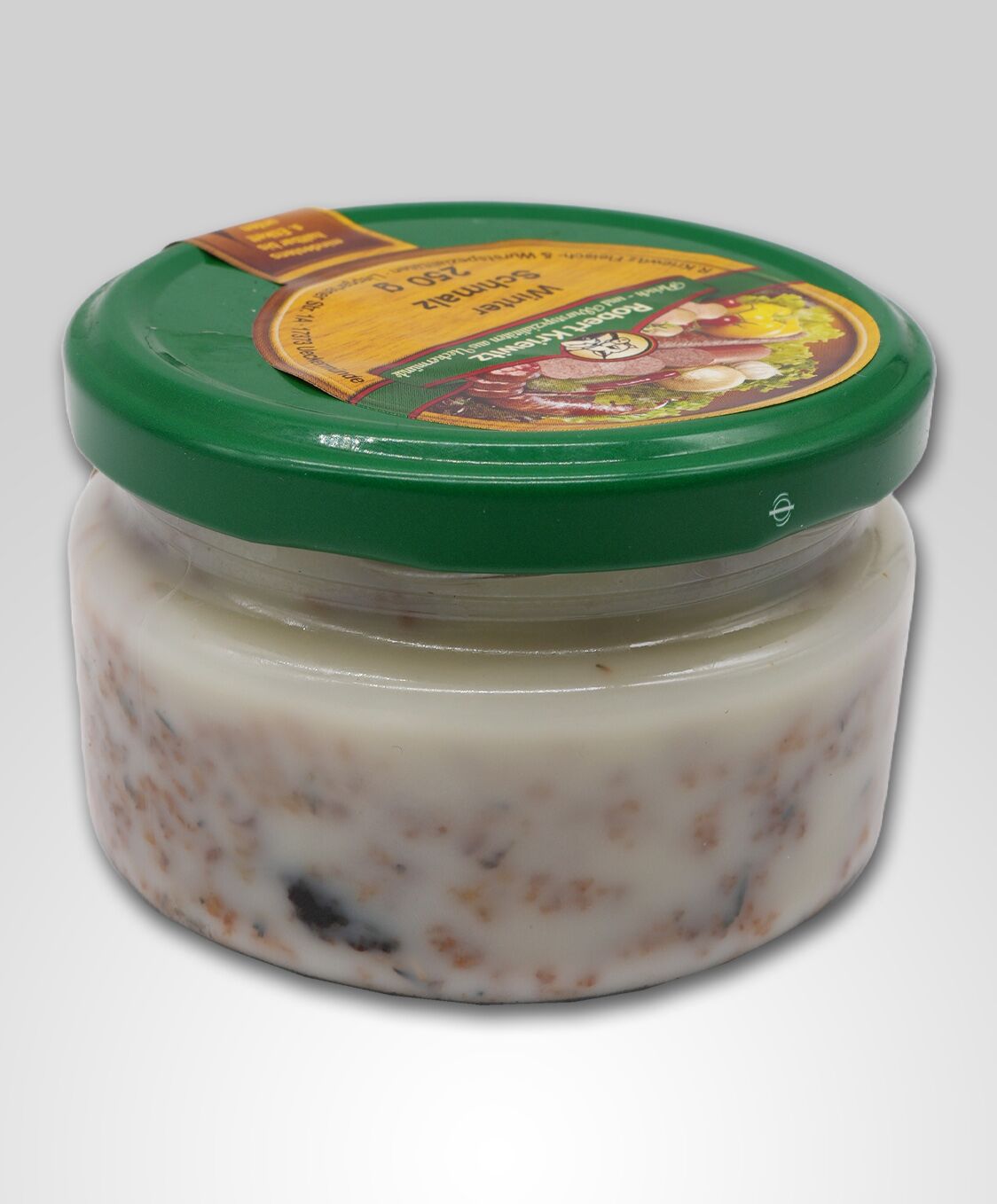 Unser Winterschmalz wird mit viel Liebe zum Detail hergestellt und enthält ausschließlich hochwertige Inhaltsstoffe. Es ist frei von künstlichen Zusätzen oder Konservierungsstoffen – nur das Beste für Ihren Gaumen! Verpassen Sie nicht diese perfekte Kombination aus traditionellem Handwerk und einem Hauch von Winterzauber. Bestellen Sie jetzt unser Winterschmalz und verwöhnen Sie Ihren Gaumen mit einem Genuss, der Sie durch die kalte Jahreszeit begleitet!