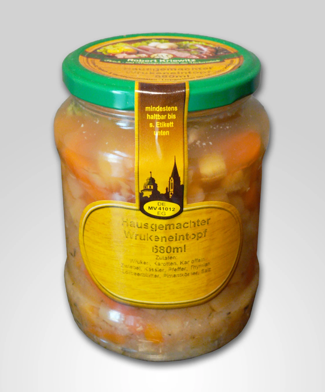 Unser Wrukeneintopf ist ein echter Klassiker aus der Uckermark – gekocht nach überliefertem Familienrezept, das seit Generationen in unserer Fleischerei weitergegeben wird. Die Wrucke, auch als Steckrübe bekannt, ist in unserer Region tief verwurzelt und erlebt mit unserem Eintopf ihr kulinarisches Comeback.